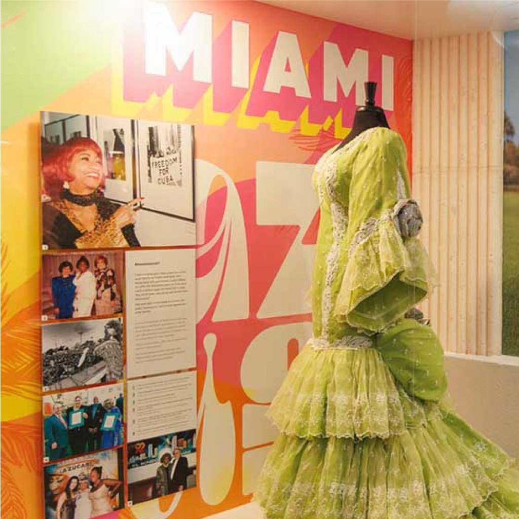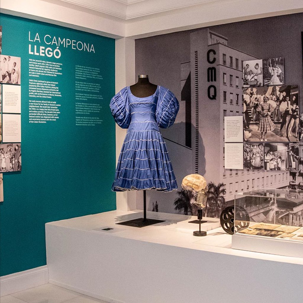 Celia’s trademark orange, red, and white polka dot dress and shoes have been placed in the Smithsonian’s permanent collection. The exhibit pays tribute to Celia’s iconic style—her flamboyant costumes, brightly colored wigs, tight sequined dresses, and perilously high heels.